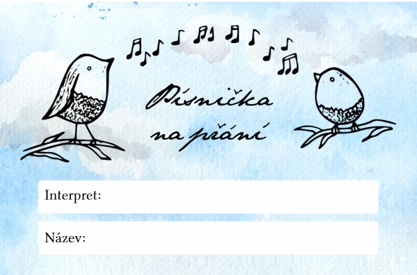 Dopřejte Vašim svatebčanům zatančit si nebo si poslechnout svoji oblíbenou písničku. Na kartičku jednoduše napíšete její název spolu s interpretem a předáte DJ. Na kartičku můžete připsat kdo tuto píseň posílá a komu.