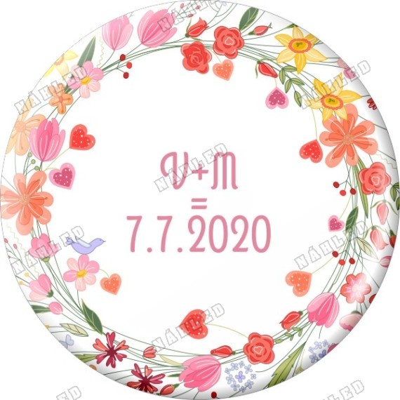 Kulatá svatební samolepka s Vašimi jmény a datem oddání lze využít na polepení obálek, krabiček, dárků, lahví, výslužek, pozvánek, apod. Nabízíme velikosti Ø 35mm, Ø 45mm a Ø 60mm. Velikost si zvolte dle potřeby.