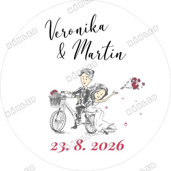 Kulatá svatební samolepka s Vašimi jmény a datem oddání lze využít na polepení obálek, krabiček, dárků, lahví, výslužek, pozvánek, apod. Nabízíme velikosti Ø 35mm, Ø 45mm a Ø 60mm. Velikost si zvolte dle potřeby.