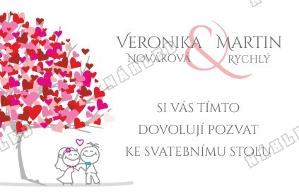 Jednostranné pozvánky ke svatebnímu stolu, hostinu, párty aj. s potiskem ve velikosti 99x65mm.