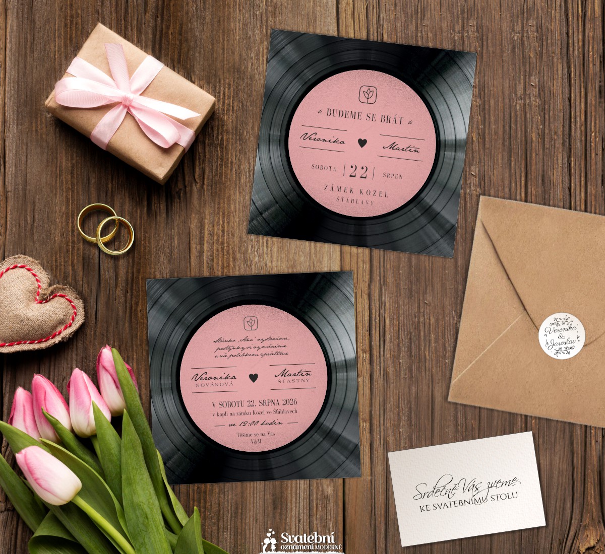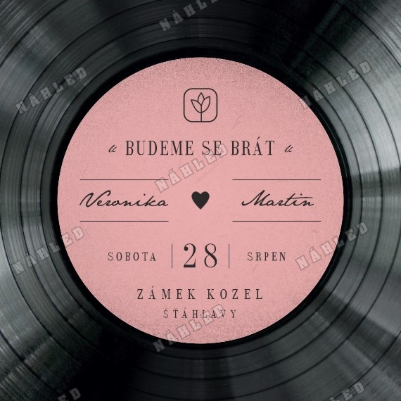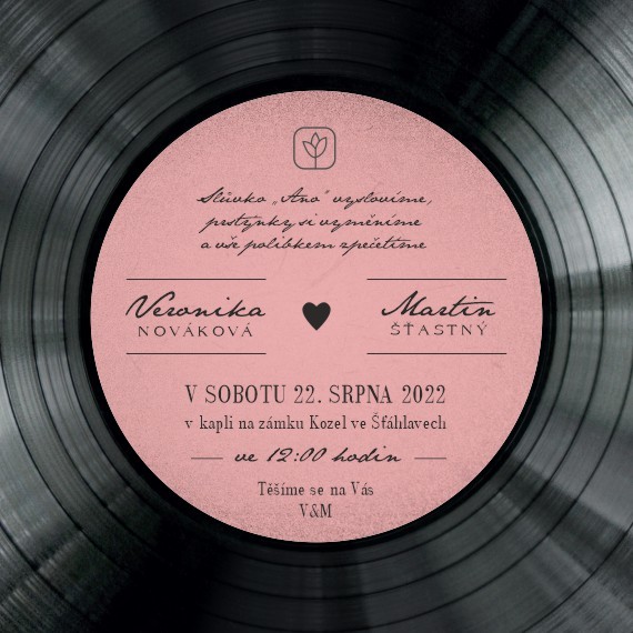 Úvod > Svatební oznámení > Čtvercová oboustranná oznámení  v designu vinylové desky