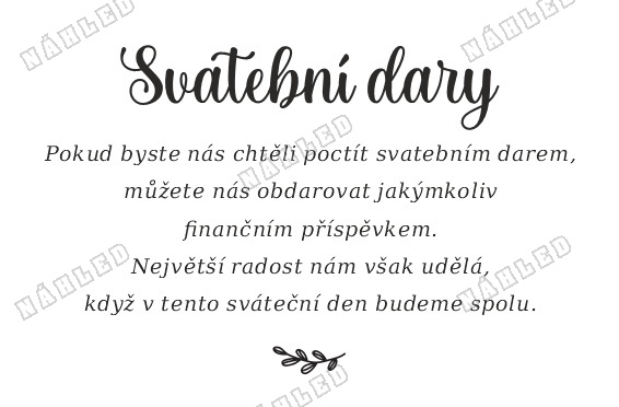 Jednostranné žádosti o svatební dar s potiskem ve velikosti 9,9 x 6,5 cm.